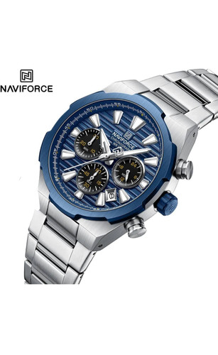 ساعت مچی کرنوگراف مردانه نیوی فورس استیل صفحه سرمهای NAVIFORCE مدل Nf8081