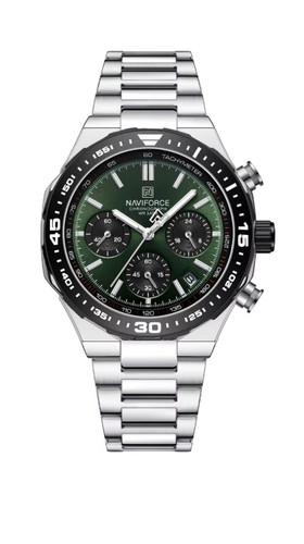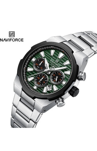 ساعت مچی کرنوگراف مردانه نیوی فورس استیل صفحه سبز NAVIFORCE مدل Nf8081