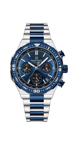 ساعت مچی کرنوگراف مردانه نیوی فورس دورنگ سرمهای NAVIFORCE مدل NF8049