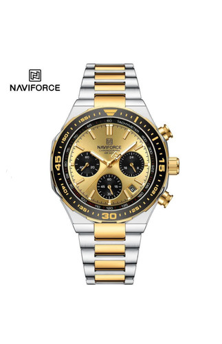 ساعت مچی کرنوگراف مردانه نیوی فورس دورنگ طلایی NAVIFORCE مدل Nf8049