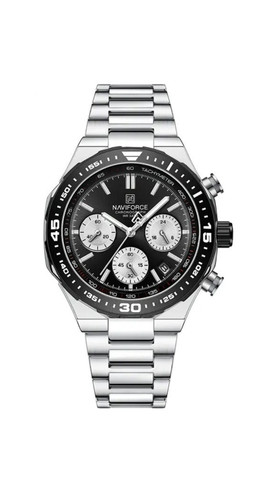 ساعت مچی کرنوگراف مردانه نیوی فورس استیل صفحه مشکی NAVIFORCE مدل Nf8049