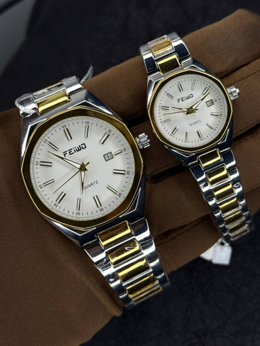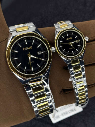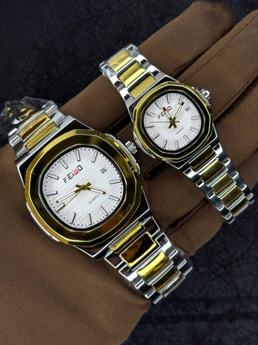 ساعت مچی ست زنانه مردانه طرح کرنو فیوو Feiwo دورنگ طلایی سفید