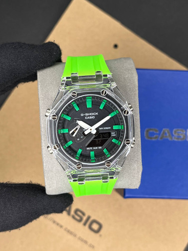 ساعت جیشاک 2100 قاب شیشه ای پمپی-سبز هفت رنگ