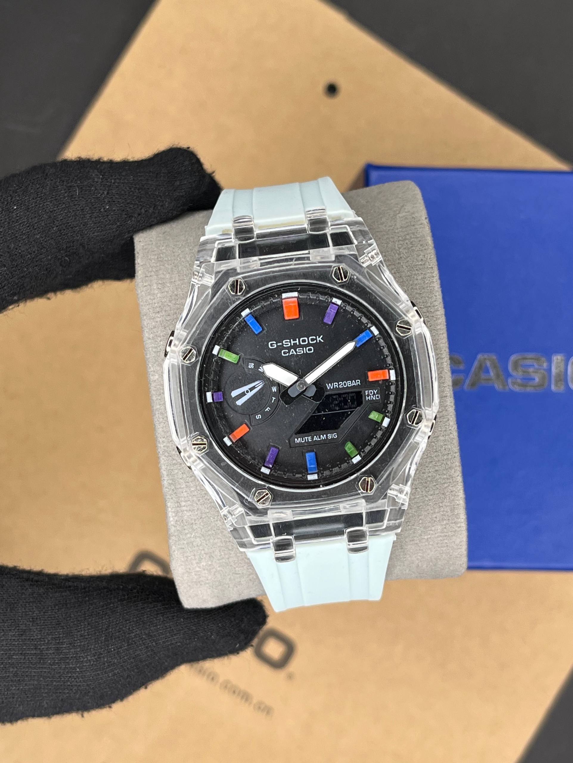 ساعت جیشاک 2100 قاب شیشه ای پمپی-تیفانی هفت رنگ