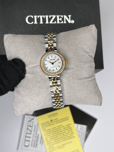 ساعت کلاسیک سیتیزن دور نگین زنانه موتور ژاپن- دورنگ طلایی سفید