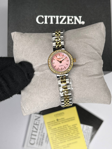 ساعت کلاسیک سیتیزن دور نگین زنانه موتور ژاپن-استیل صورتی
