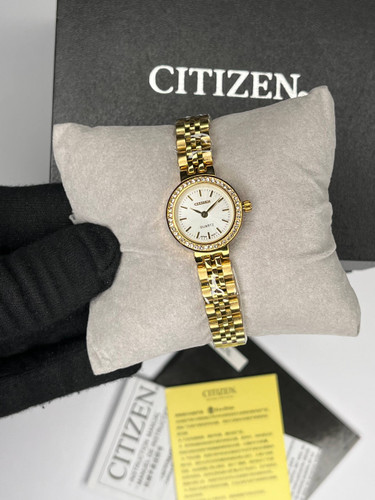ساعت کلاسیک سیتیزن دور نگین زنانه موتور ژاپن-طلایی سفید