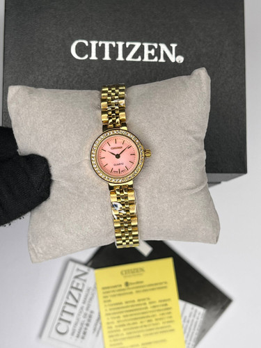ساعت کلاسیک سیتیزن دور نگین زنانه موتور ژاپن-طلایی صورتی