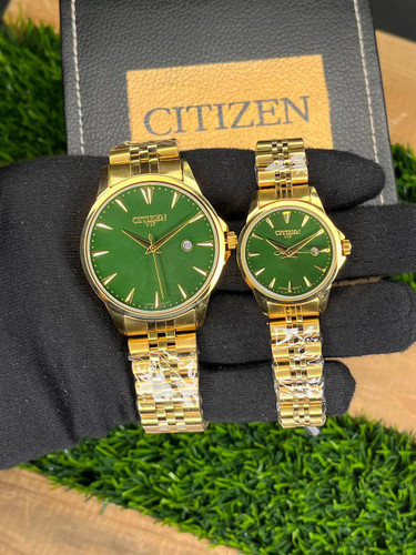 ساعت ست سیتیزن کلاسیک زنانه و مردانه موتور ژاپن-طلایی سبز