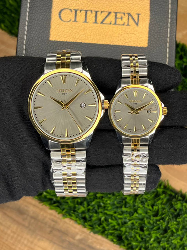 ساعت ست سیتیزن کلاسیک زنانه و مردانه موتور ژاپن-دورنگ طوسی