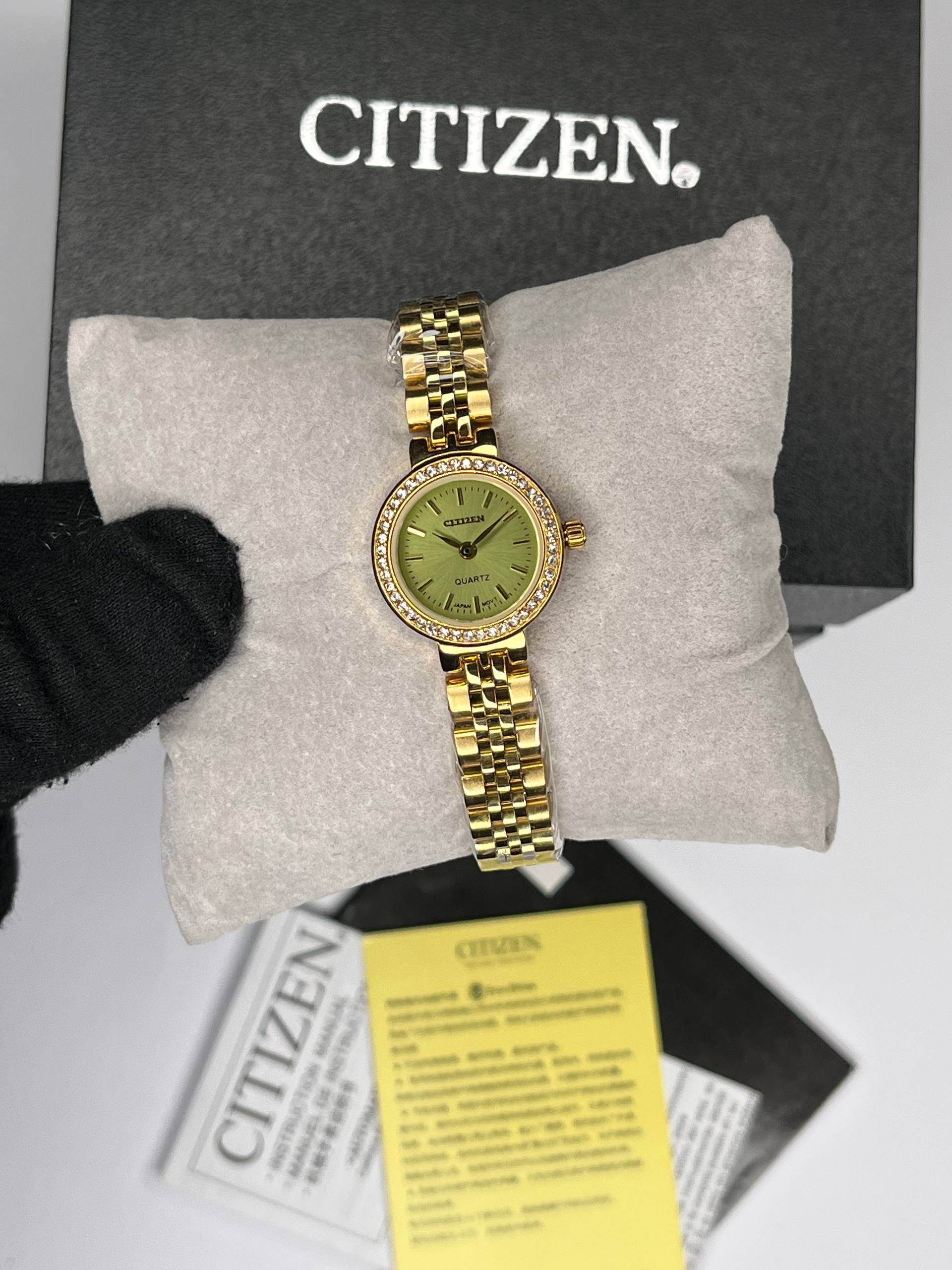 ساعت کلاسیک سیتیزن دور نگین زنانه موتور ژاپن-طلایی سبز