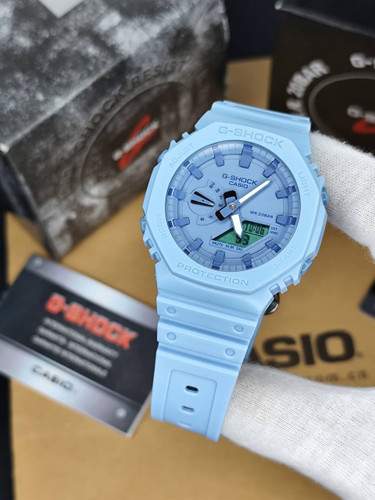 ساعت کاسیو جیشاک آبی روشن اتولایت جهان نما مدل GA2100