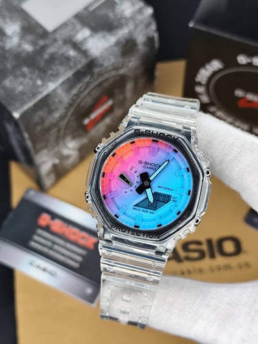 ساعت کاسیو جیشاک شیشه ای عدد هفت رنگ اتولایت جهان نما مدل GA2100