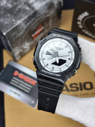 ساعت کاسیو جیشاک سفید مشکی اتولایت جهان نما مدل GA2100