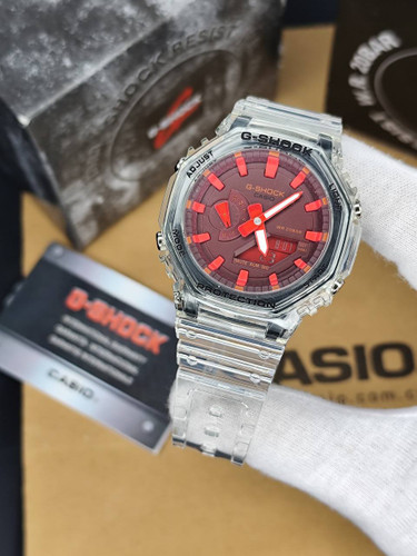 ساعت کاسیو جیشاک شیشهای قرمز اتولایت جهان نما مدل GA2100