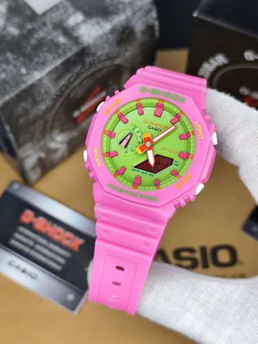 ساعت کاسیو جیشاک صورتی سبز اتولایت جهان نما مدل GA2100