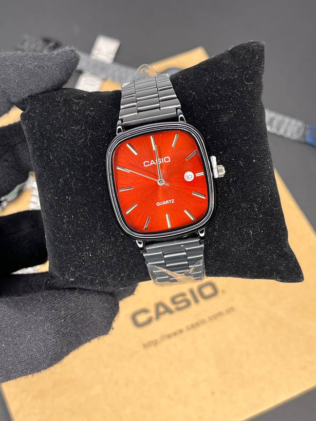 نوع ساعت: ساعت کلاسیک کاسیو اولد مانی رنگ: مشکی صفحه قرمز (چری) جنس بدنه: استیل ضد آب: در حد پاشش آب نوع قفل: بند باز فشاری نوع بند: کرکره ای