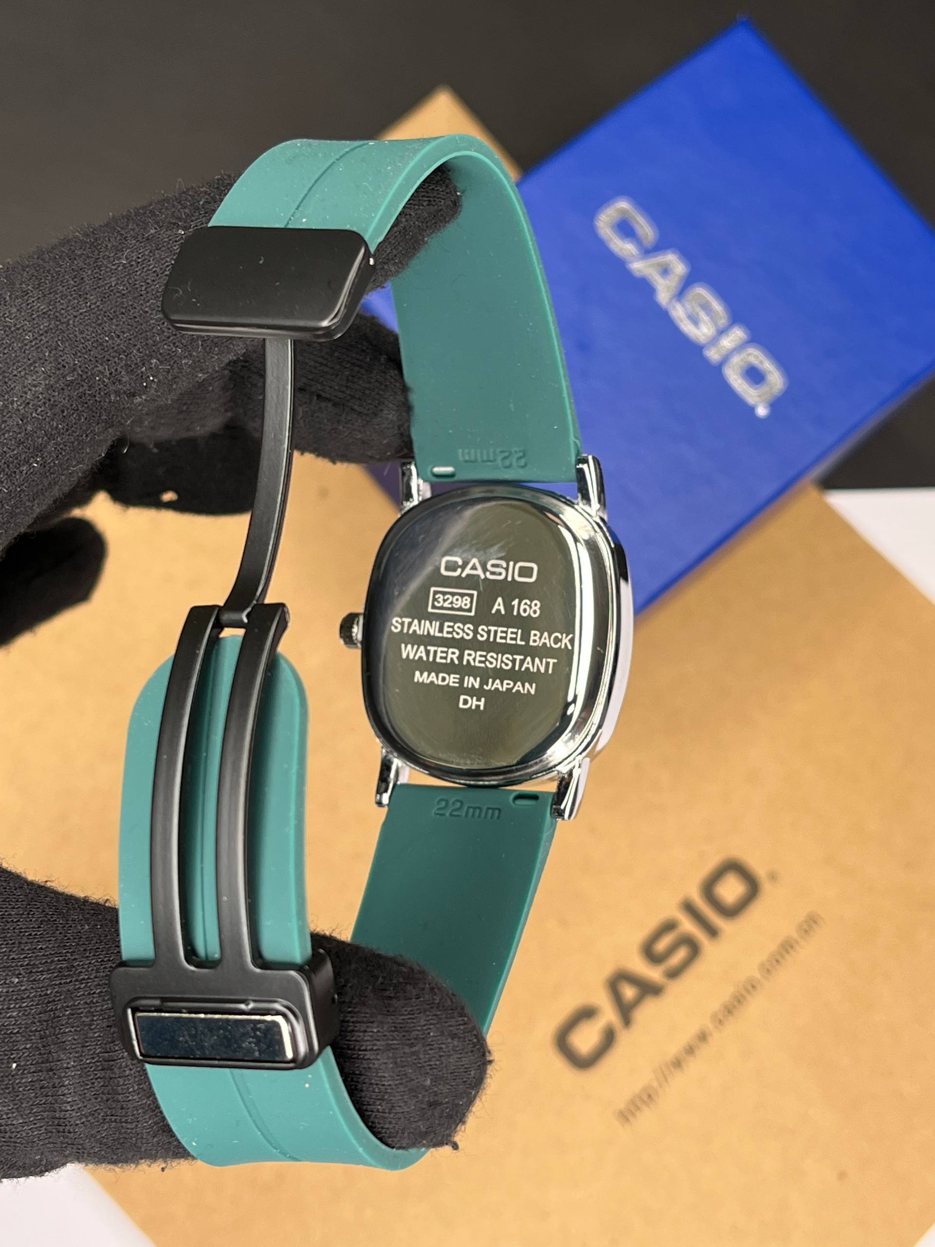 نوع ساعت: ساعت کلاسیک اسپرت کاسیو اولدمانی سایز: مردانه رنگ: بدنه استیل سبز جنس بدنه: استیل ضد آب: در حد پاشش آب نوع قفل: مگنتی(آهن ربایی) نوع بند: پیو ضد حساسیت
