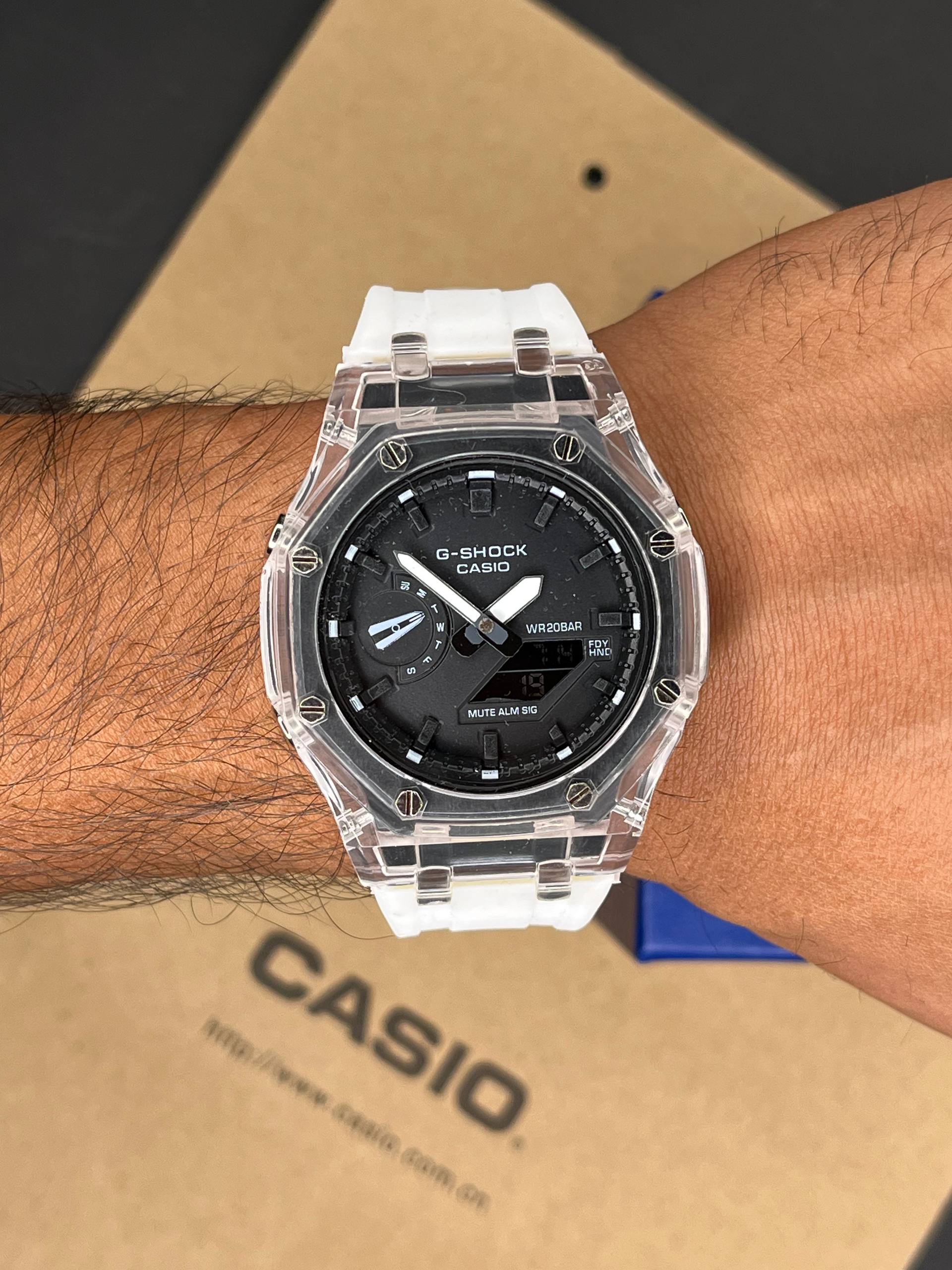نوع ساعت: ساعت اسپرت جیشاک 2100 رنگ: سفید صفحه مشکی موتور: دوزمانه لایت: فعال آلارم:فعال کرنومتر: فعال تقویم: فعال جنس بدنه: پلاستیک مقاوم جنس بند: پلاستیک ضد آب: ضد آب نوع قفل: سگکی