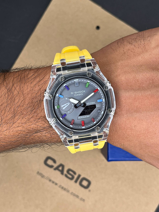 نوع ساعت: ساعت اسپرت جیشاک 2100 رنگ: زرد عدد هفت رنگ موتور: دوزمانه لایت: فعال آلارم:فعال کرنومتر: فعال تقویم: فعال جنس بدنه: پلاستیک مقاوم جنس بند: پلاستیک ضد آب: ضد آب نوع قفل: سگکی