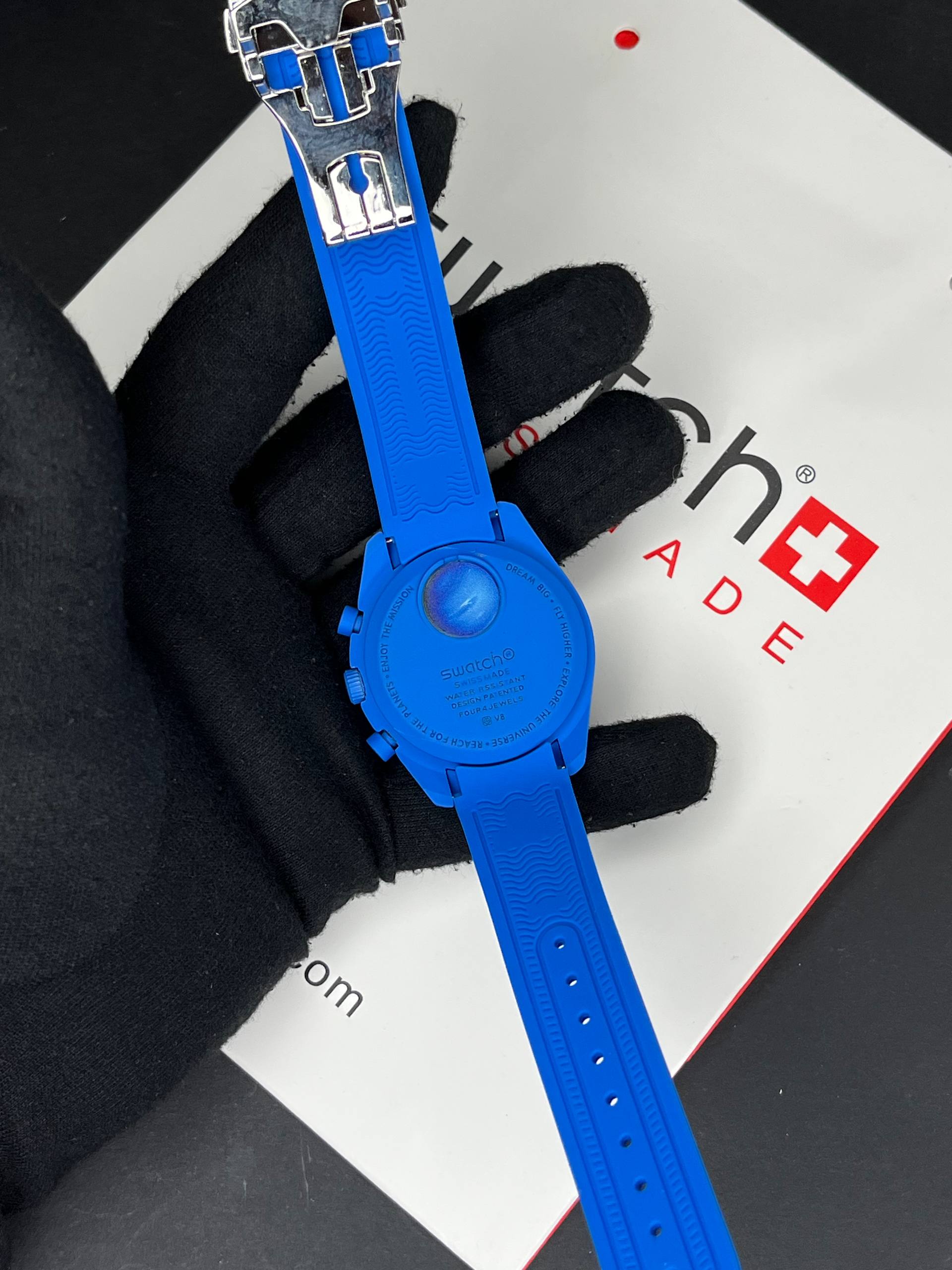نوع ساعت: ساعت اسپرت امگا سواچ مناسب: زنانه و مردانه کرنومتر: فعال سه موتور: فعال رنگ: آبی (نپتون) جنس بدنه: رنگ ثابت جنس بند: رابر (پلاستیکی) ضد آب: در حد پاشش آب نوع قفل: پروانه ای اصلی امگا