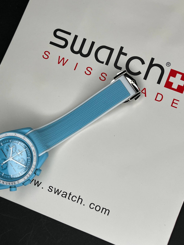 نوع ساعت: ساعت اسپرت امگا سواچ مناسب: زنانه و مردانه کرنومتر: فعال سه موتور: فعال رنگ: اورانوس آبی جنس بدنه: رنگ ثابت جنس بند: رابر (پلاستیکی) ضد آب: در حد پاشش آب نوع قفل: پروانه ای اصلی امگا