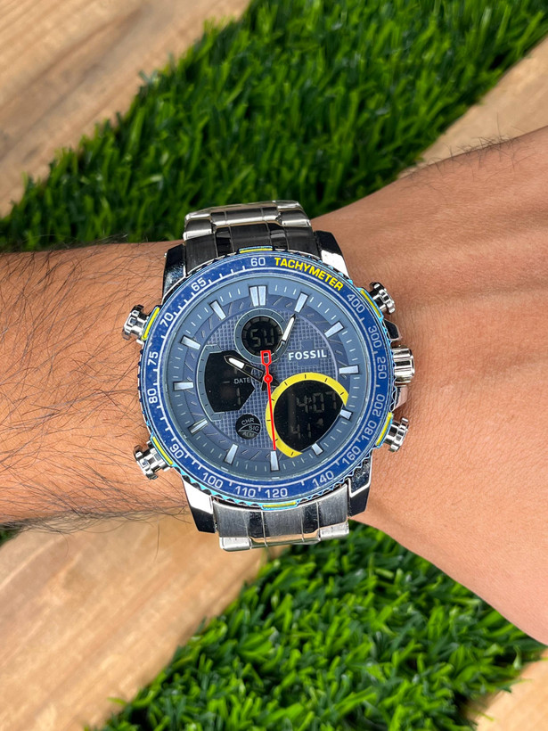 ساعت مردانه فسیل 2 زمانه بدنه استیل سرمه‌ای مدل1-8093-UG