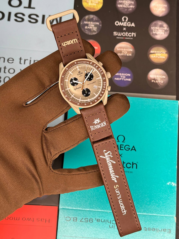 ساعت طرح امگا سواچ موتور ژاپن-بدنه فلزی قهوه‌ای