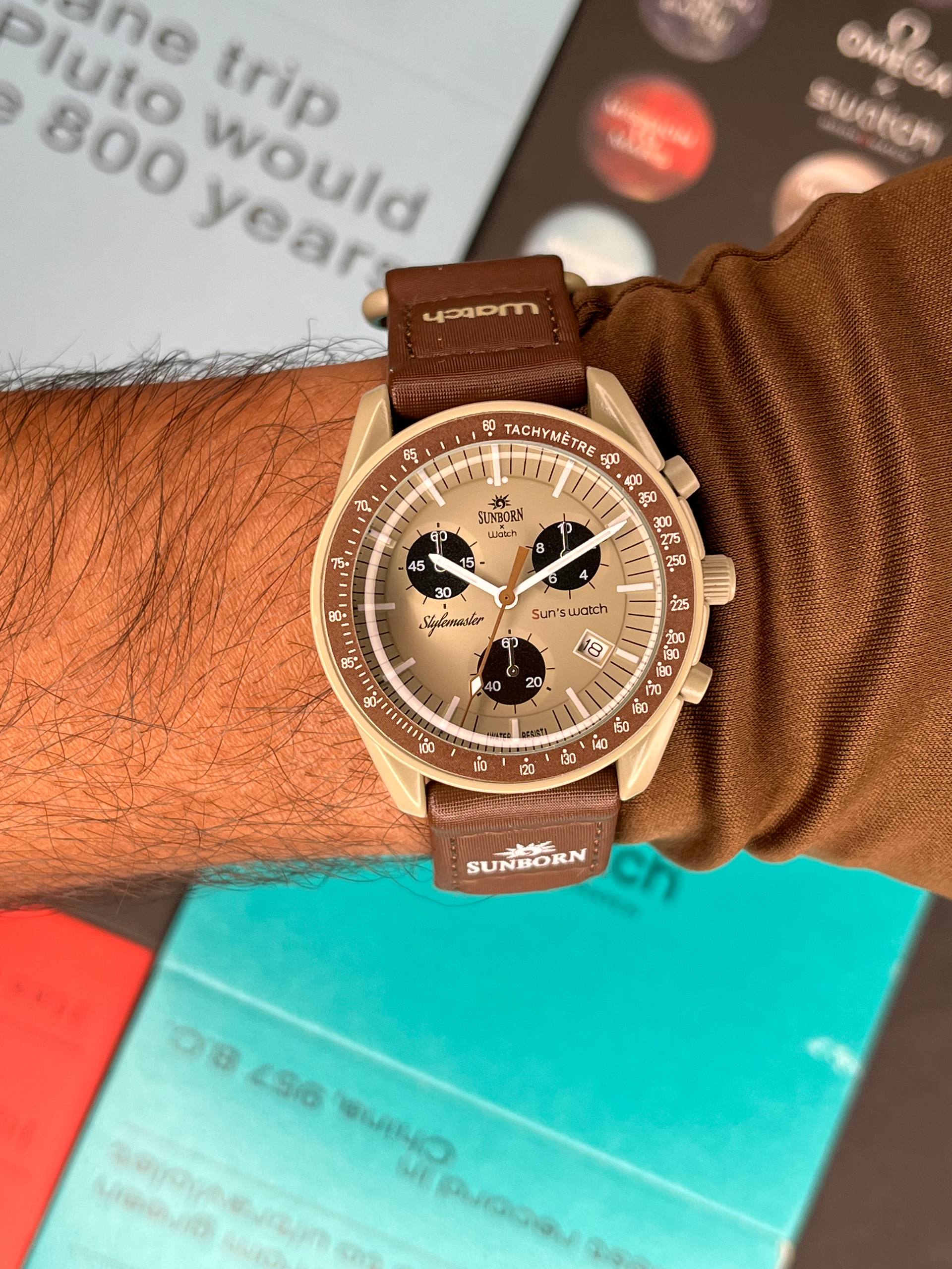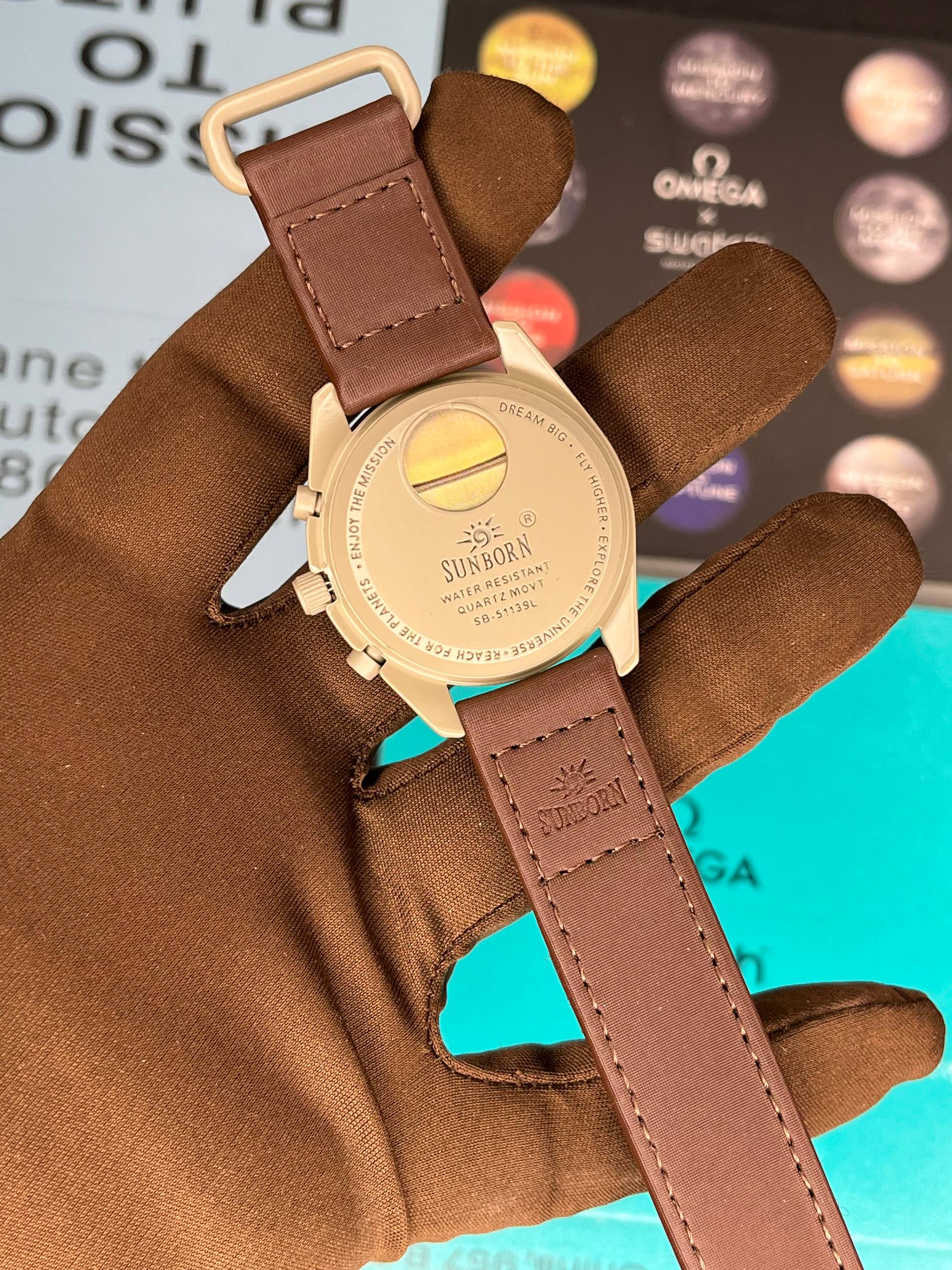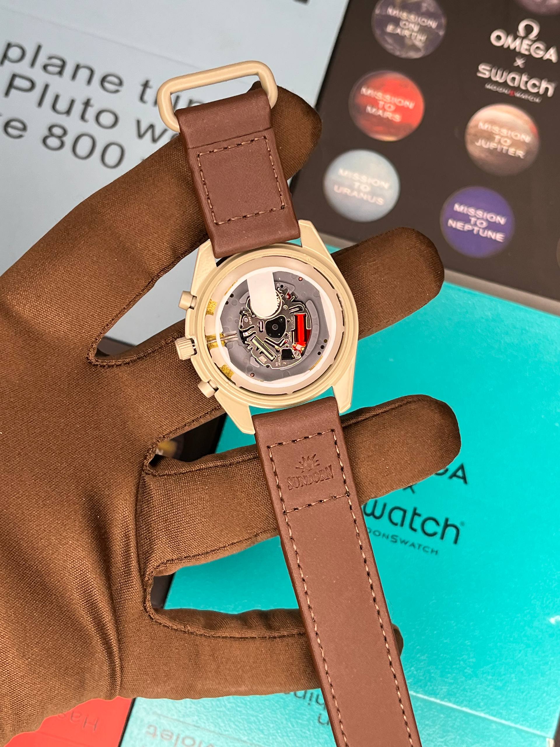 ساعت طرح امگا سواچ موتور ژاپن-بدنه فلزی قهوه‌ای