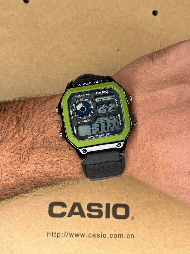 ساعت مچی جهان نما مردانه کاسیو دورنگ سبز مدل AE-1200WHB-3B