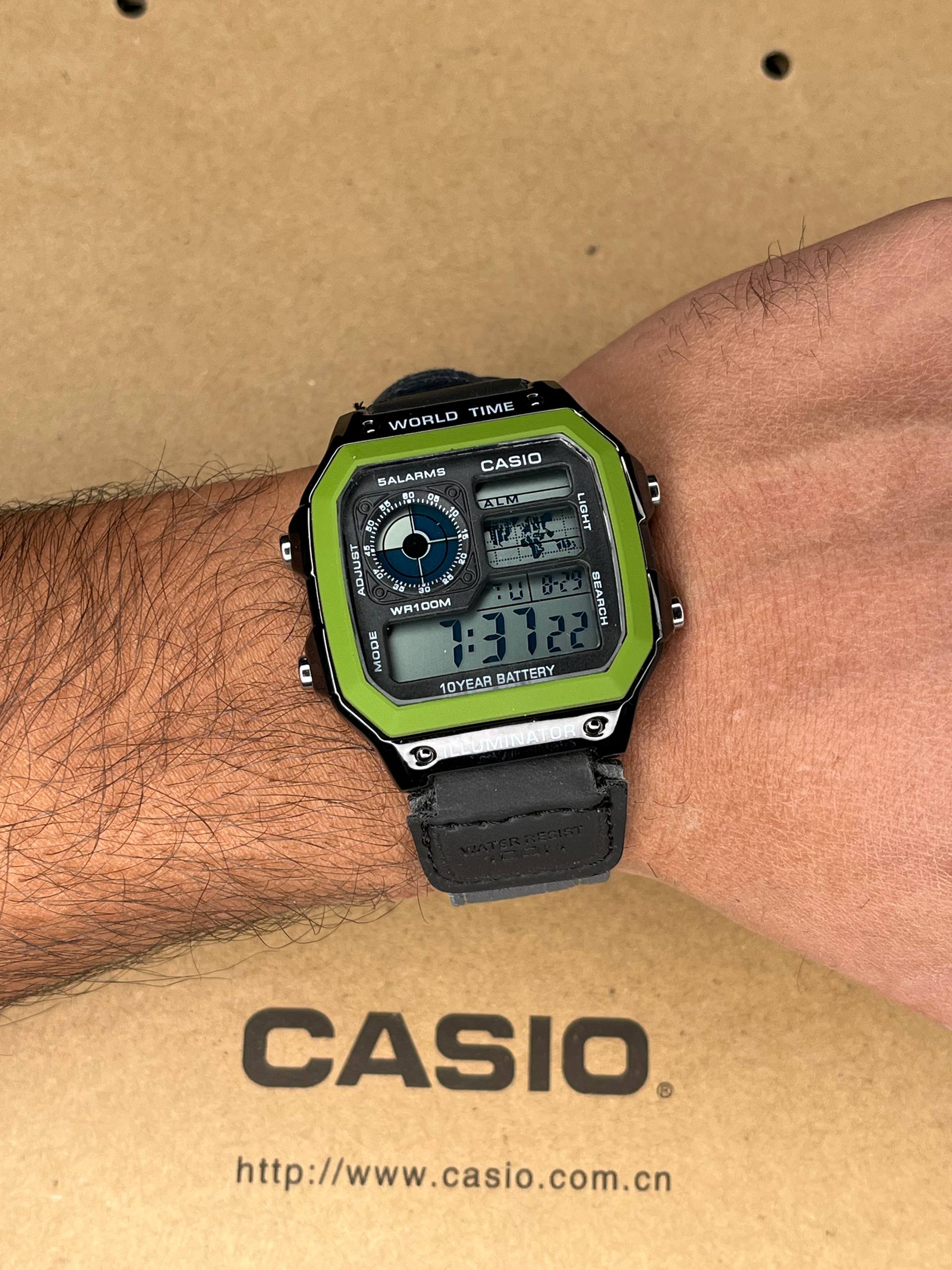 ساعت مچی جهان نما مردانه کاسیو دورنگ سبز مدل AE-1200WHB-3B