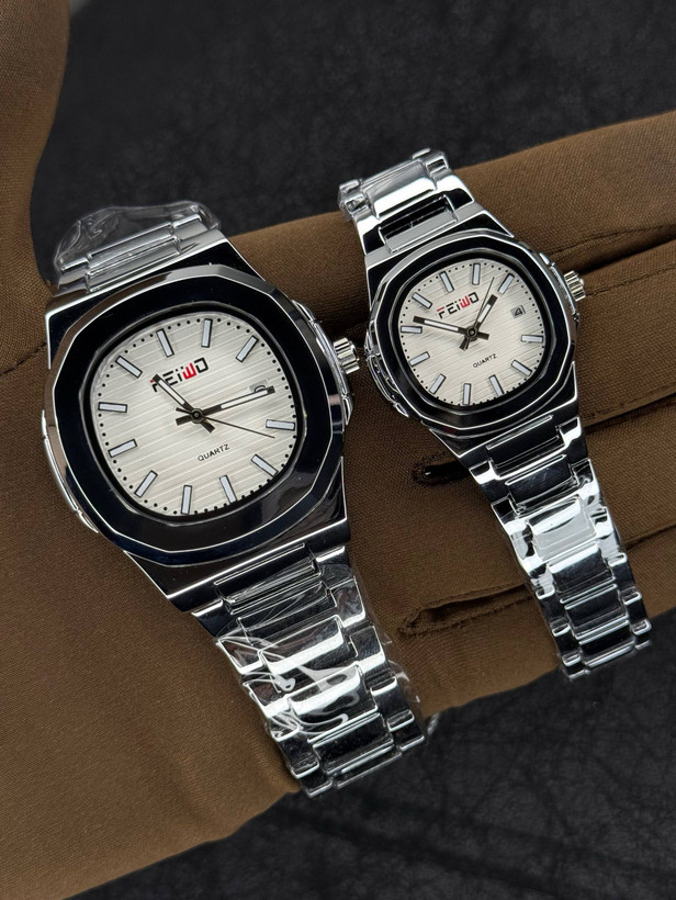ساعت مچی ست زنانه و مردانه فیوو طرح پتک فلیپ Feiwo استیل سفید