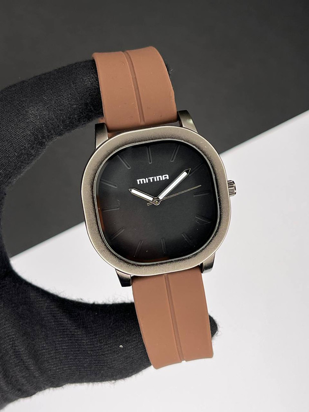 نوع ساعت: ساعت اسپرت کلاسیک میتینا رنگ: قاب و صفحه مشکی بند قهوهای جنس بدنه: استیل جنس بند: سلیکونی،پیو ضد آب: در حد پاشش آب نوع قفل: مگنتی آهن ربایی نوع بند: قابل سایز
