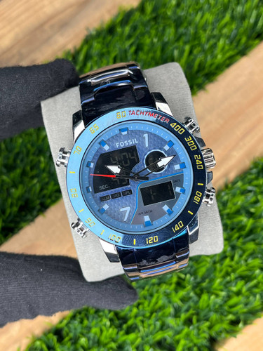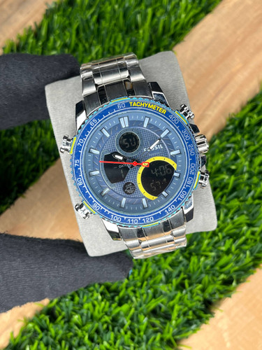 ساعت مردانه فسیل 2 زمانه بدنه استیل سرمهای مدل1-8093-UG